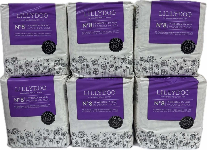 Набір з 6 упаковок екологічних підгузків 8 розміру Lillydoo 17+ кг 114 шт