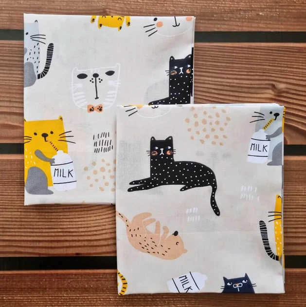Дитячі пелюшки 2 шт. з натуральної бавовняної тканини Польща для новонароджених 90*80 см BST Коти на бежевому