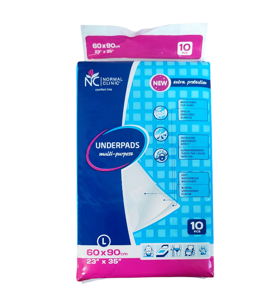 Пелюшки гігієнічні універсальні PNC031 NORMAL CLINIC L 60х90 10 шт/уп 0869