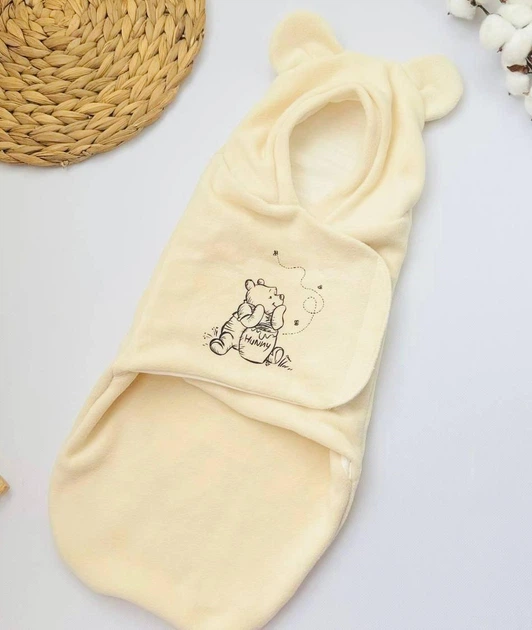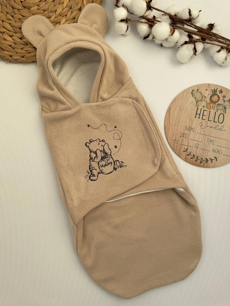 Теплий флісовий кокон-евро пелюшка на липучці з вушками Вінні 0-1,5 м бежевий