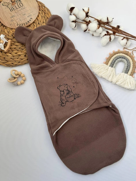 Теплий флісовий кокон-евро пелюшка на липучці з вушками Вінні 0-1,5 м коричневий