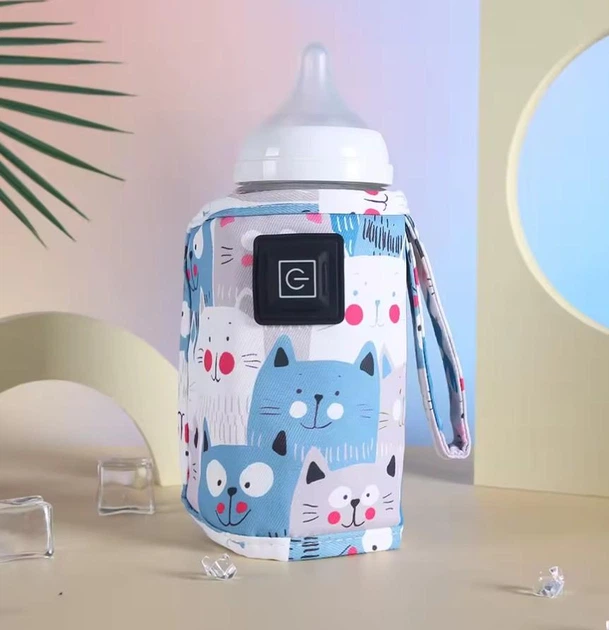 Портативний підігрівач-термос для дитячої пляшечки нагрівач Живлення від USB котики Блакитний