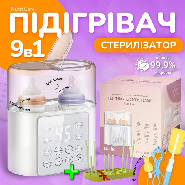 Багатофункціональний підігрівач та стерилізатор LELIK™ Nutri Care 9in1 для дитячих пляшечок KH-0588, білий + Подарунок сушар
