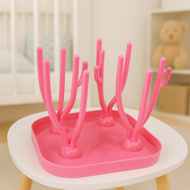 Стійка для сушіння дитячих пляшок та сосок універсальна складна Mumlove Рожевий