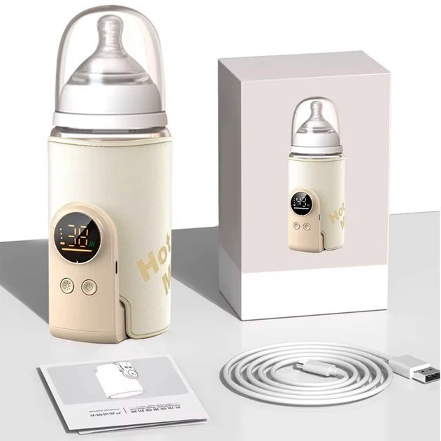 Підігрівач дитячих пляшечок з акумулятором 6000 мА·год/розумний термос з LED-дисплеєм бежевий