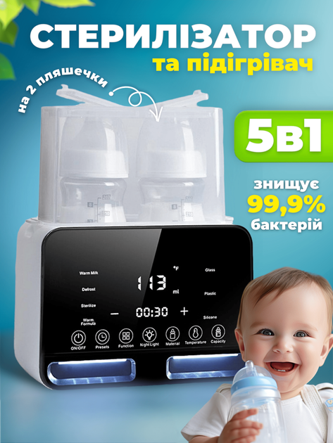Підігрівач стерилізатор для пляшечок грілка апарат підігріву дитячого харчування дитячої суміші 5 в 1 на 2 дві пляшечки елек