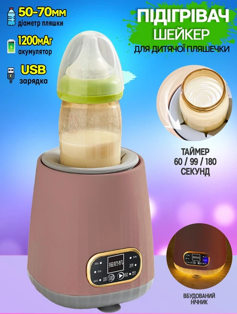 Підігрівач Шейкер молочний Yummy Base для дитячої пляшечки, підігрівач для пляшечок дитячого харчування Рожевий