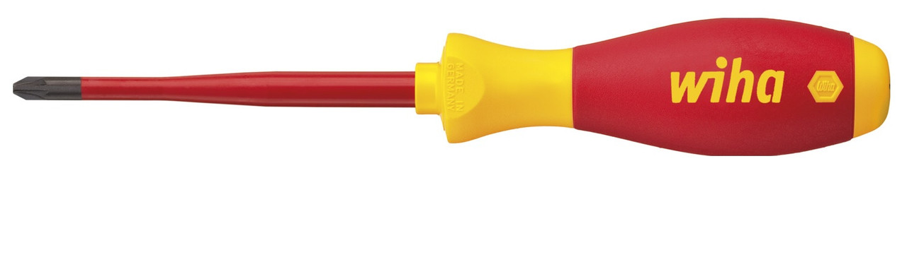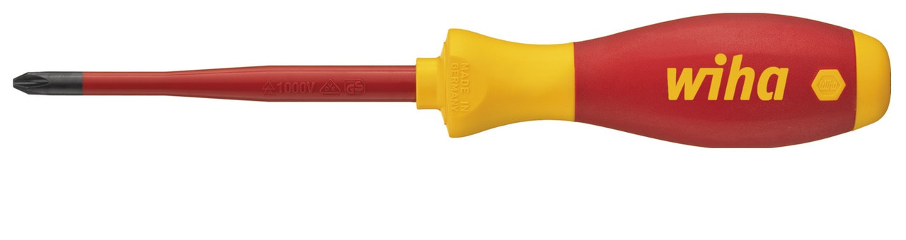 нова сталь, повне загартування, вороніння. Напилена безпосередньо на жало захисна ізоляція, повністю інтегрована у жало в передній частині. РУКОЯТКА: Ергономічна багатокомпонентна рукоятка Wiha SoftFinish з захистом від скочування. НОРМИ: Виготовлення відповідно до IEC 60900 ЗАСТОСУВАННЯ: Для робіт з деталями, що знаходяться під напругою до 1000 В змінного струму. Завдяки інтегрованій захисній ізоляції можна дістатися до розташованих глибоко гвинтових та пружинних елементів і працювати з ними. ОПИС: При завертанні гвинтів вручну суглоби та м'язи рук піддаються дії сильних тривалих навантажень. Тут допомагає особливо ергономічна викрутка SoftFinish, яка забезпечує оптимальну передачу зусилля руки. Викрутками з довгими тонкими ручками можна надійно та швидко завертати дрібні гвинти. Для завертання гвинтів є великі ручки, що дозволяють створювати великий крутний момент. Крім того, ручки різних розмірів завжди підходять до руки працівника що закручує гвинти . Захист від скочування та знак гвинта на кінці ручки забезпечують ефективне виконання робіт. Розроблена спеціально для застосування в електротехніці Wiha slimTECHNOLOGY інтегрувала захисну ізоляцію в жало викрутки, що дозволило зробити його на 33% тоншим. Такі викрутки можуть легко діставати до глибоко розташованих гвинтів і пружинних елементів. Ізольовані викрутки піддаються