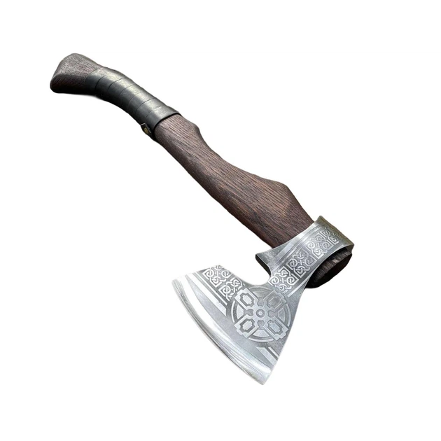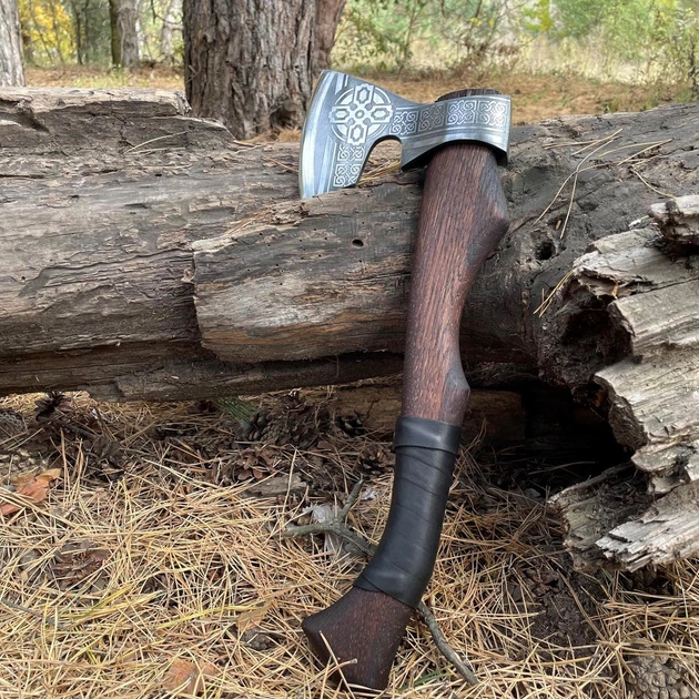 Сокира «Тамплієр» ручної роботи з гравіюванням, руків'я дерево зі шкіряною обмоткою