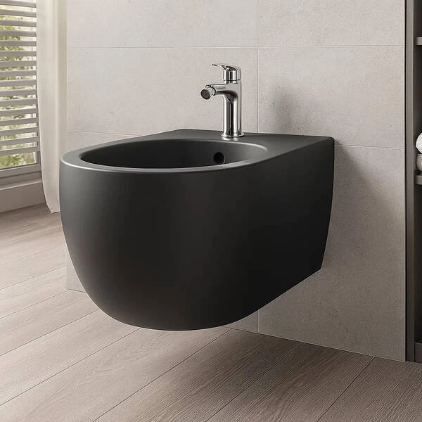 Біде підвісне Qtap чорне матове для ванної кімнати елегантне керамічне сантехнічне обладнання (600626)