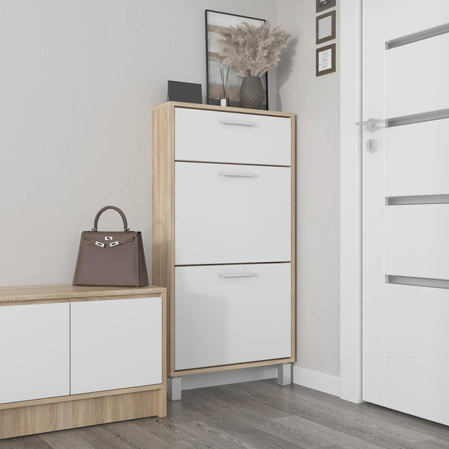 Полиця для взуття підлогова на 3 шухляди, тумба в передпокій для взуття з ДСП (F-159BT+B)