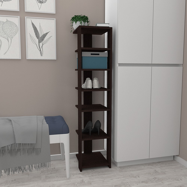 Відкрита полица для взуття настінна 2-рівнева Горіх + Чорний 20*25*79 см