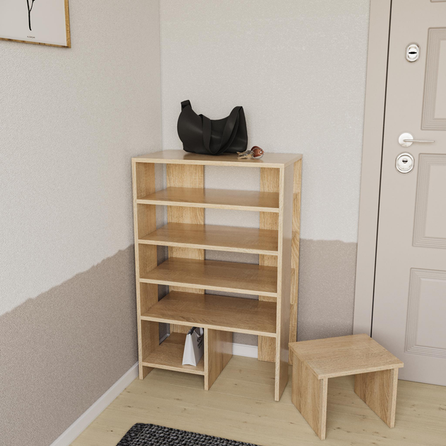 Стійка для взуття на 5 полиць з висувним стільцем в передпокій 60х93.5х34.4 см Дуб Сонома