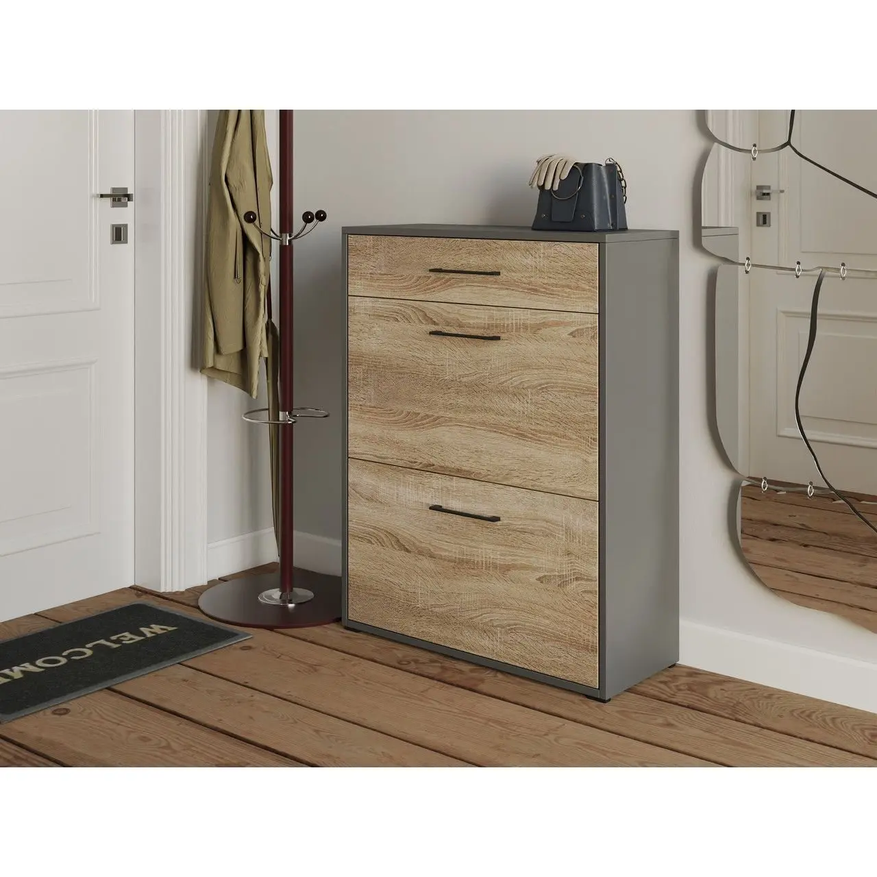 Полиця для взуття Flamecame на 3 шухляди з ДСП II FT-7 Дуб сонома Антрацит