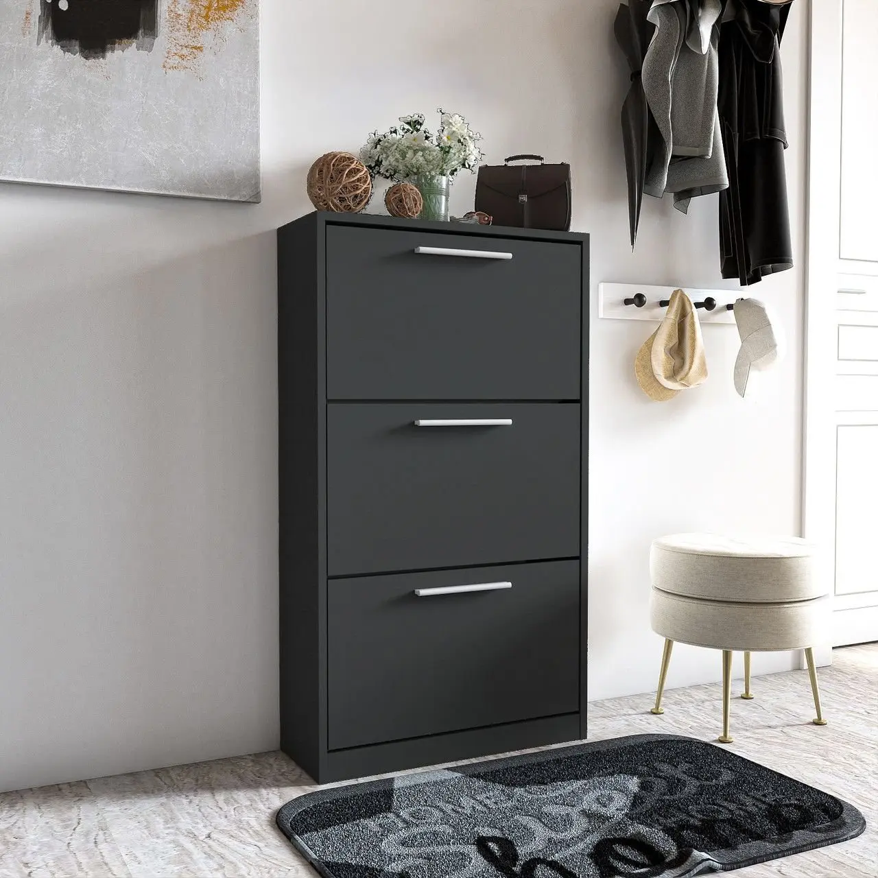 Полиця для взуття Flamecame підлогова на 3 шухляди з ДСП з ручками в стилі лофт II FST-21 Антрацит