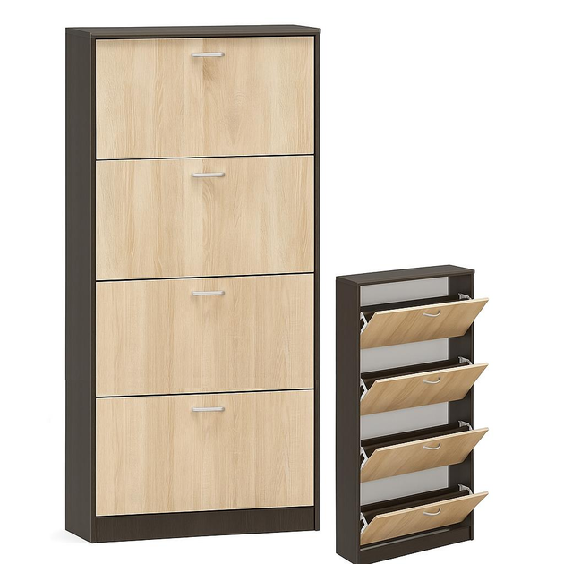Тумба взуттєва закрита Мебель Сервіс ТО 600 чотиридверна Венге + Дуб самоа