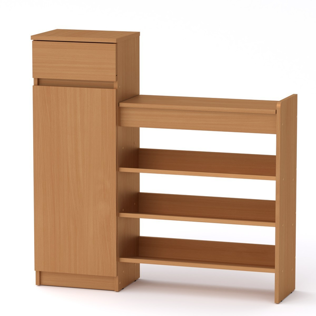 Тумба під взуття Обувниця закрита/відкрита з дверцятами, полицями та шухлядою Компаніт ТО 16 Бук
