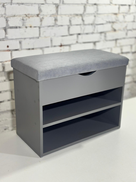 Полиця для взуття в передпокій з ящиком і м'яким відкривним верхом . ДСП графіт. Шириною 90 см. Тканина - сіра