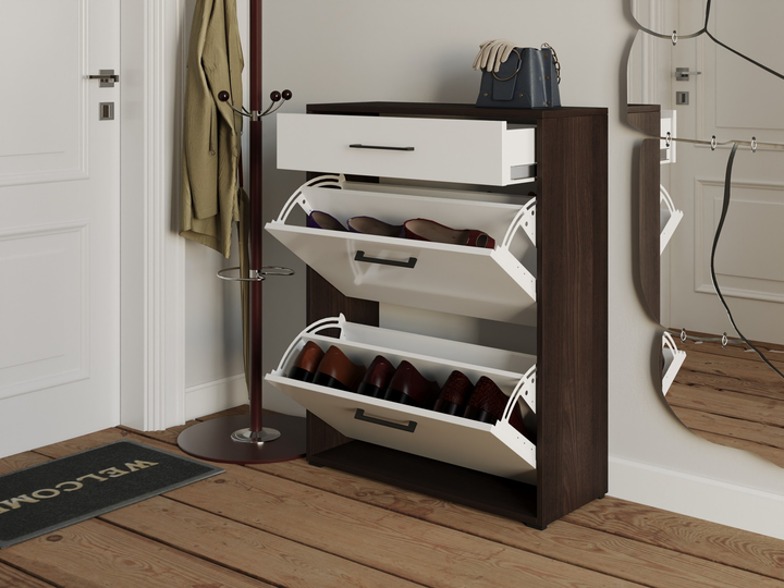 Тумба для взуття на 2 відділення з висувним ящиком 700x920x280 мм Білий (mt-207-wh)