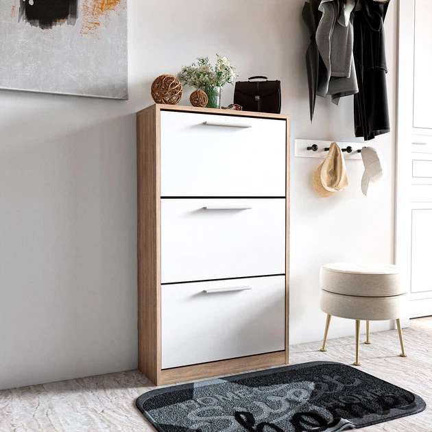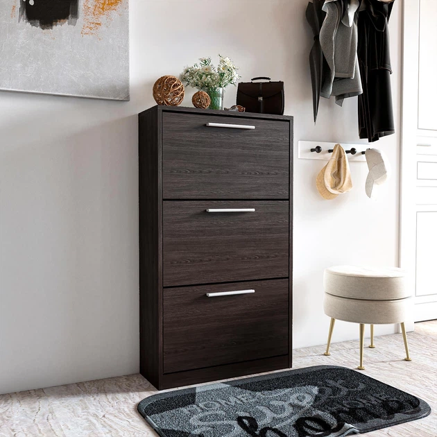 Полиця для взуття підлогова на 3 шухляди з ДСП з ручками в стилі лофт (FST-21D+B)