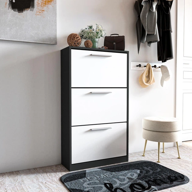 Полиця для взуття підлогова на 3 шухляди з ДСП з ручками в стилі лофт FST-21BT+B