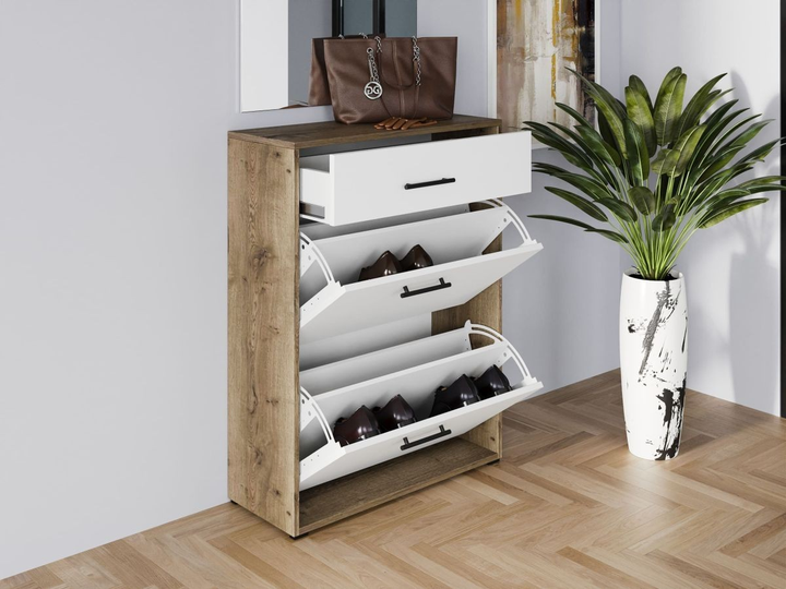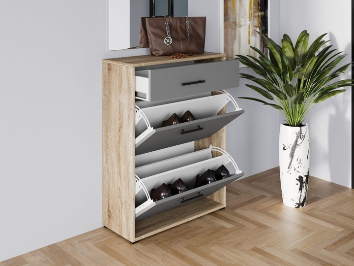 Полиця (тумба) для взуття / обувниця закрита від виробника DrevoGoods вузька з ламінованого ДСП для дому з висувною шухлядою