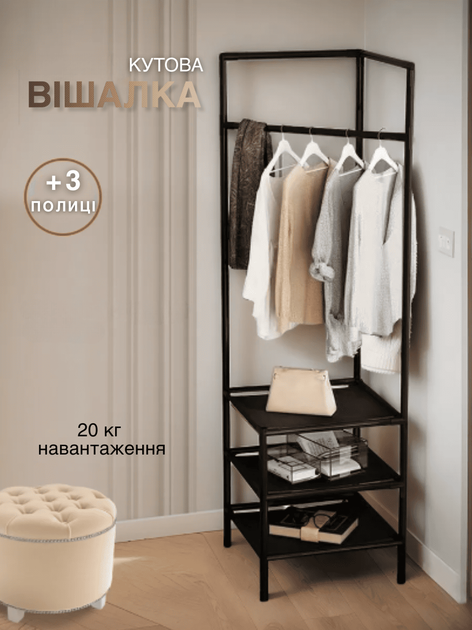 Стійка вішалка кутова для одягу та взуття GTM Loft Mini Organizer сталева підлогова з трьома полицями для взуття стійка для