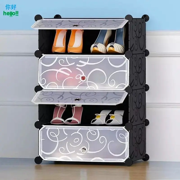 Пластиковий шафа для взуття універсальний 37 см x 37 см x 90 см на 12 пар з 4 полицями