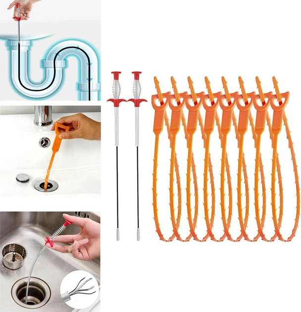 Комплект гнучких тросів 10 шт для чищення каналізаційних труб та видалення засмічень зливу, ванної кімнати, раковини, каналі