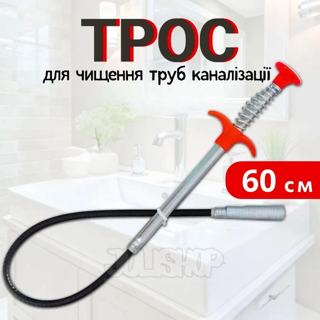 Трос для чищення труб каналізації №2 60 см, інструмент для прочищення засмічення раковини (1008011-Other-1)