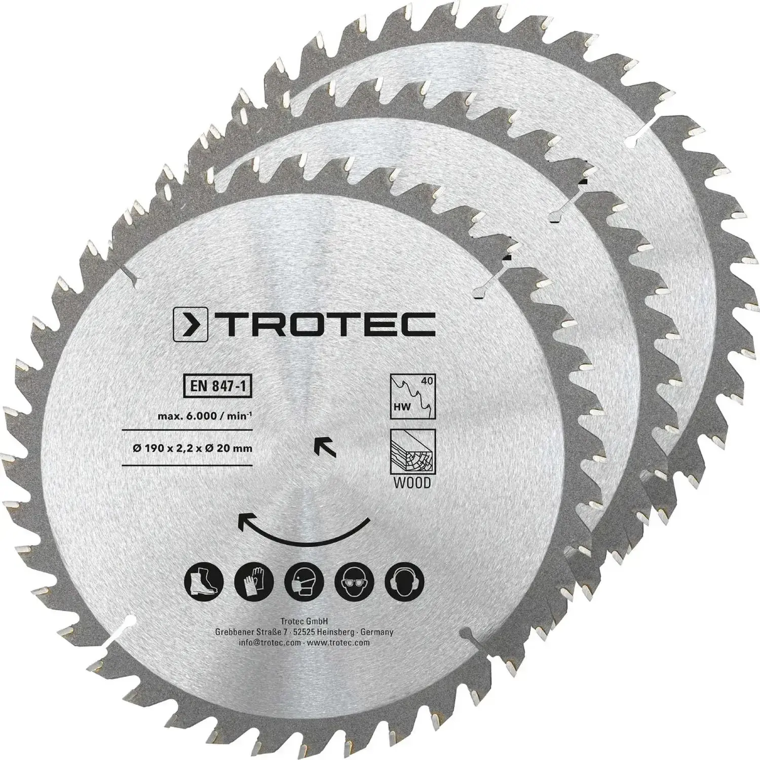 Диск пиляльний Trotec HW40 Wood 190 х 20 х 2.2 мм 3 шт. (DAS302855)