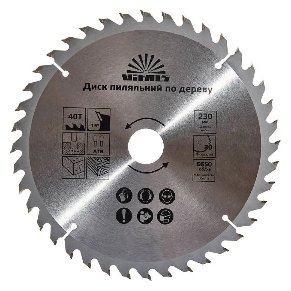 Диск пиляльний Vitals по дереву 230x30/25.4/22.2 мм ATB 40 (00000001681404)
