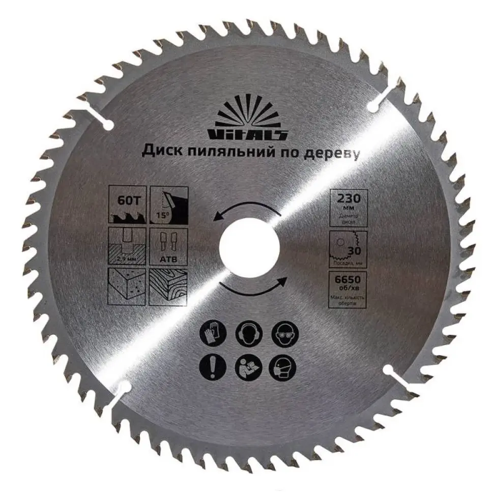 Диск пиляльний Vitals по дереву 230x30/25.4/22.2 мм ATB 60 (00000001681414)