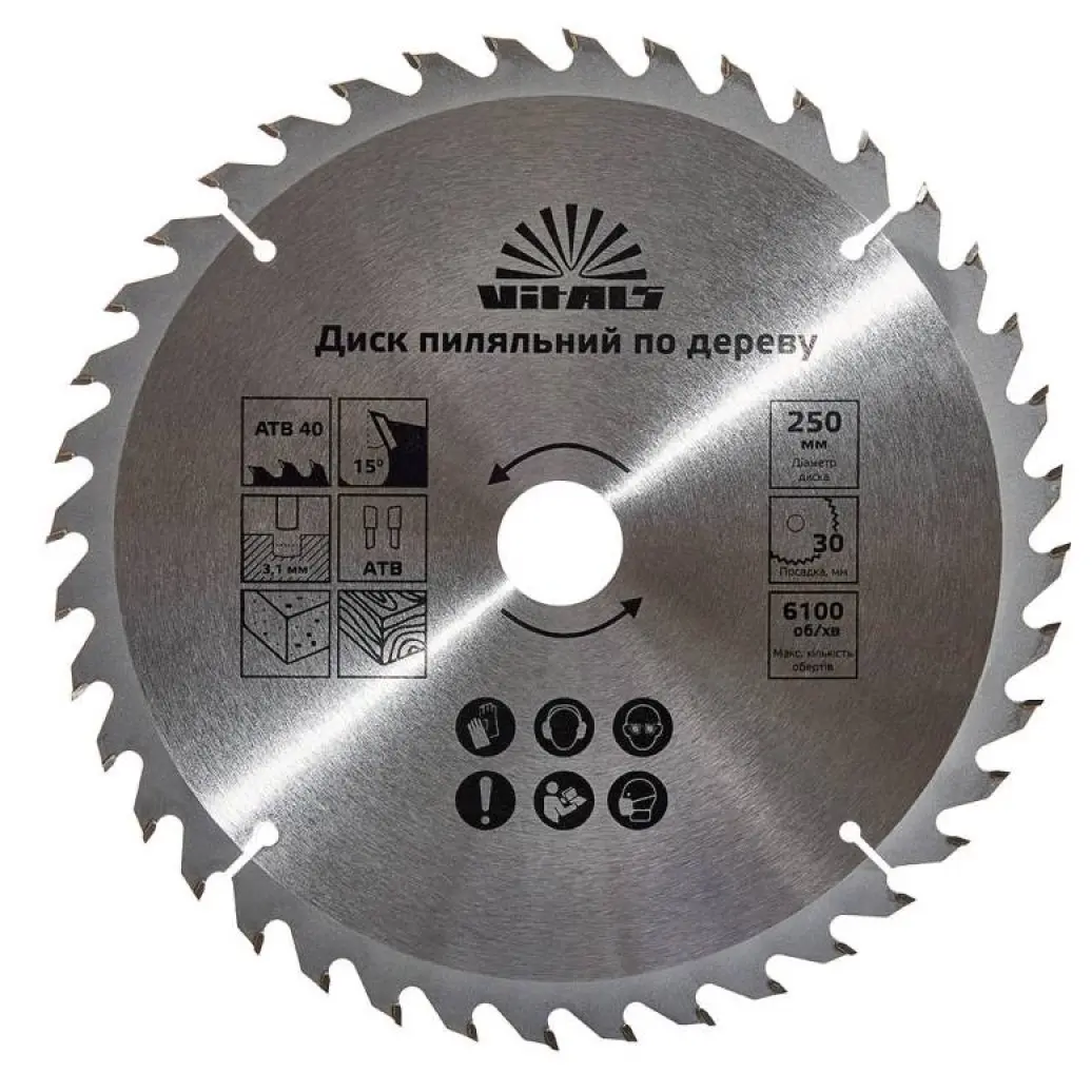 Диск пиляльний Vitals по дереву 250x30/25.4 мм ATB 40 (00000001681424)