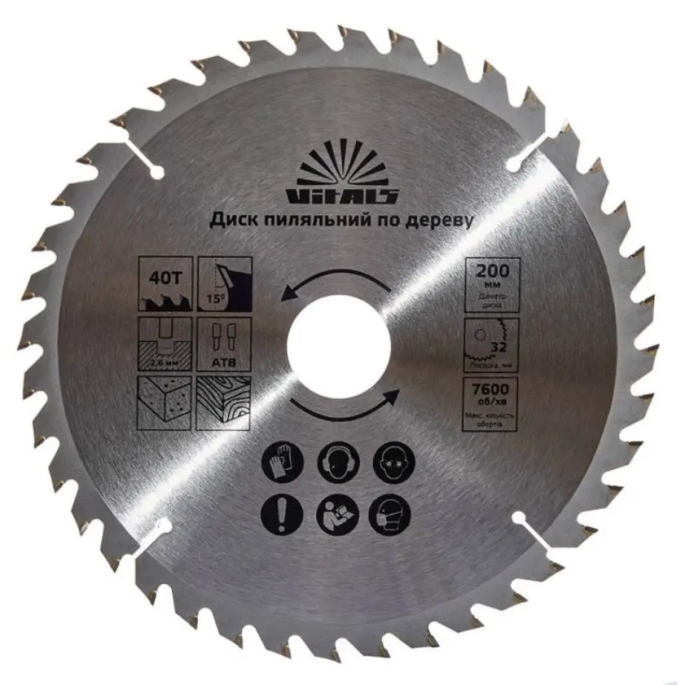 Диск пиляльний Vitals по дереву 200x32/30/25.4 мм ATB 40 (00000001681387)