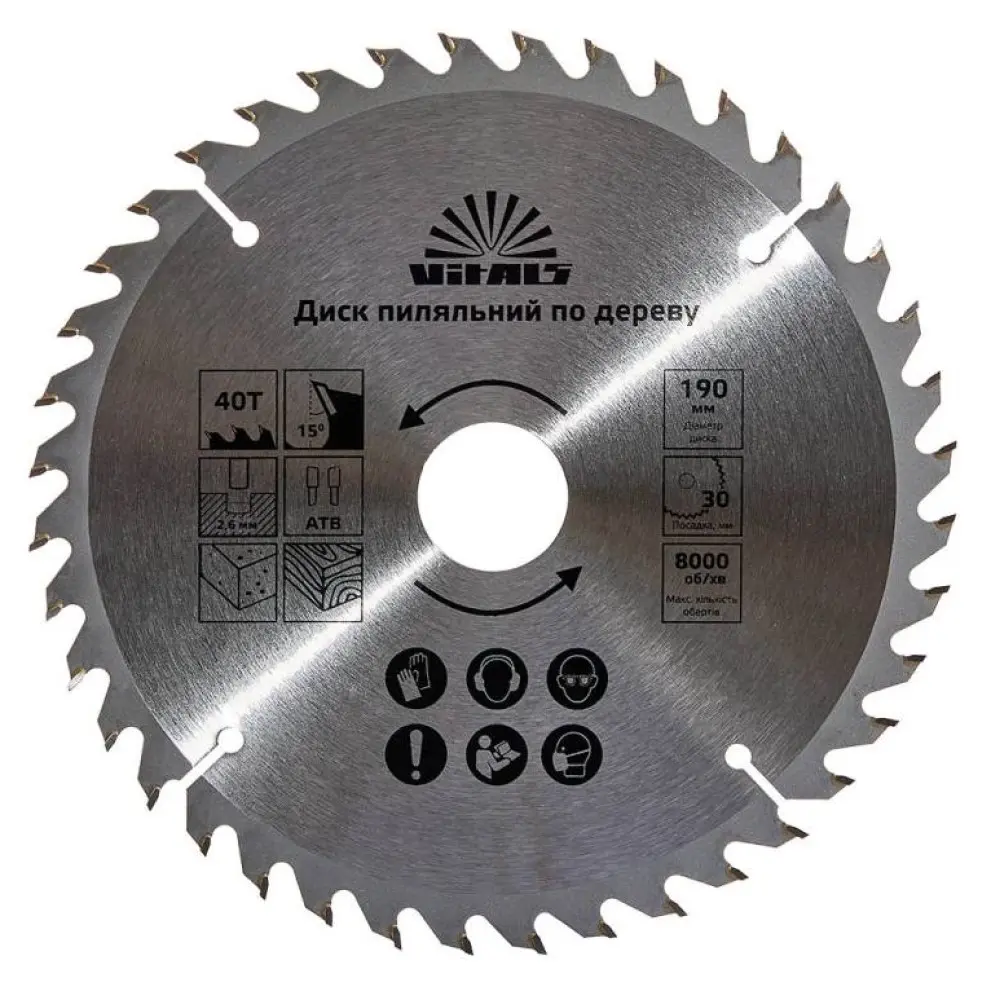 Диск пиляльний Vitals по дереву 190х30/20 мм ATB 40 (00000001681377)