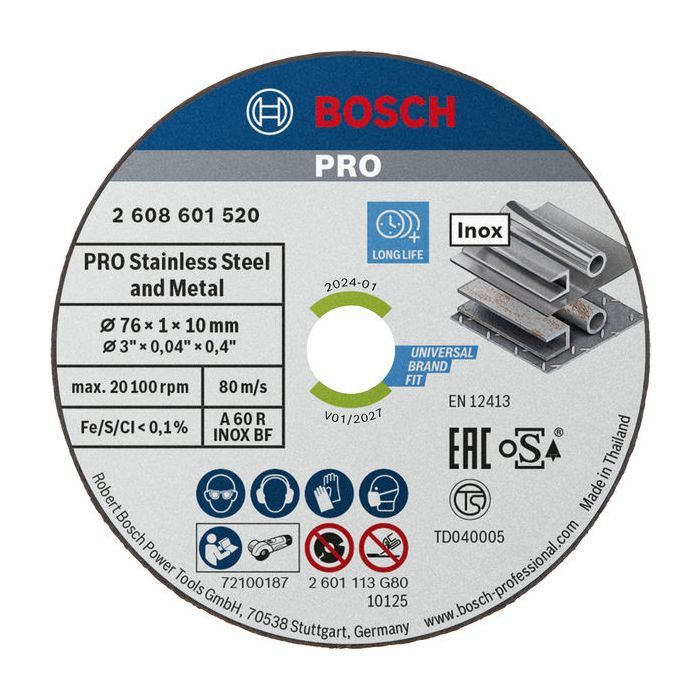 Відрізний круг Bosch PRO Stainless Steel and Metal 76х1х10 мм, 5 шт