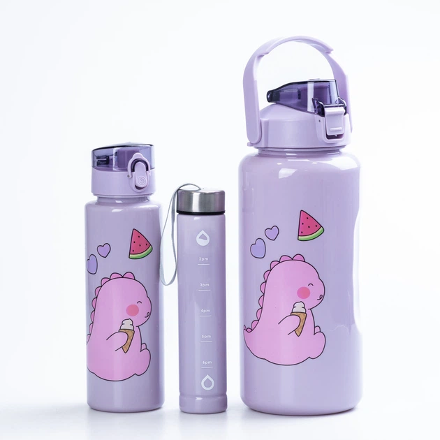 Набір пляшок для води Динозавр фіолетовий Happy Life HPZSB120013V