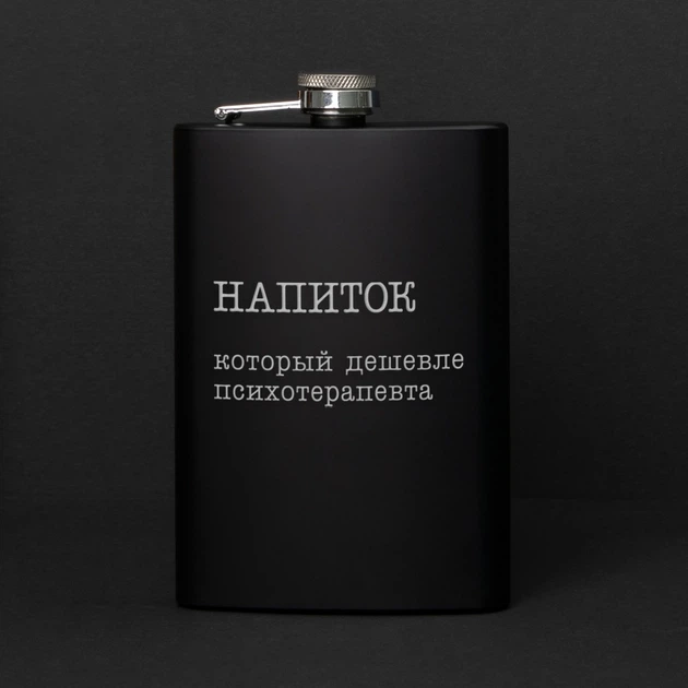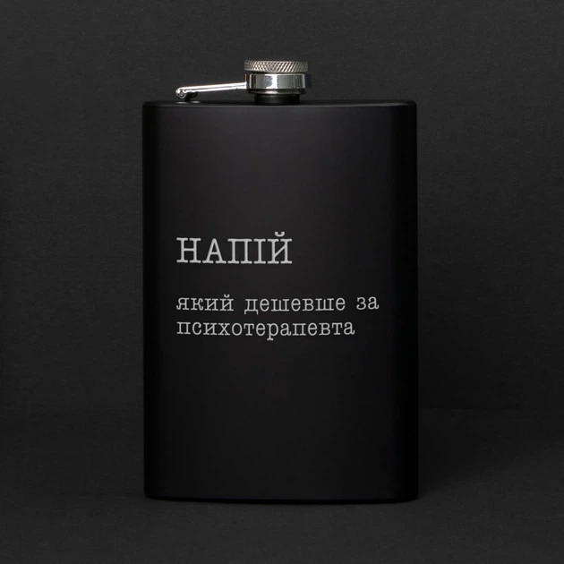 Фляга "Напій, який дешевше за психотерапевта", російська, Крафтова коробка