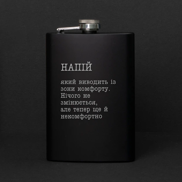 Фляга "Напій, що виводить із зони комфорту", українська, Дерев'яна подарункова коробка 5034536