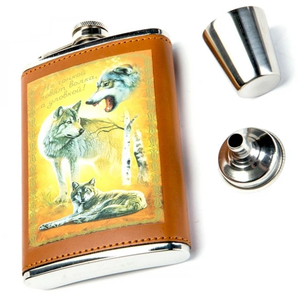 Набір Фляга подарункова та чарка Вовк TZ-04 Hip Flask