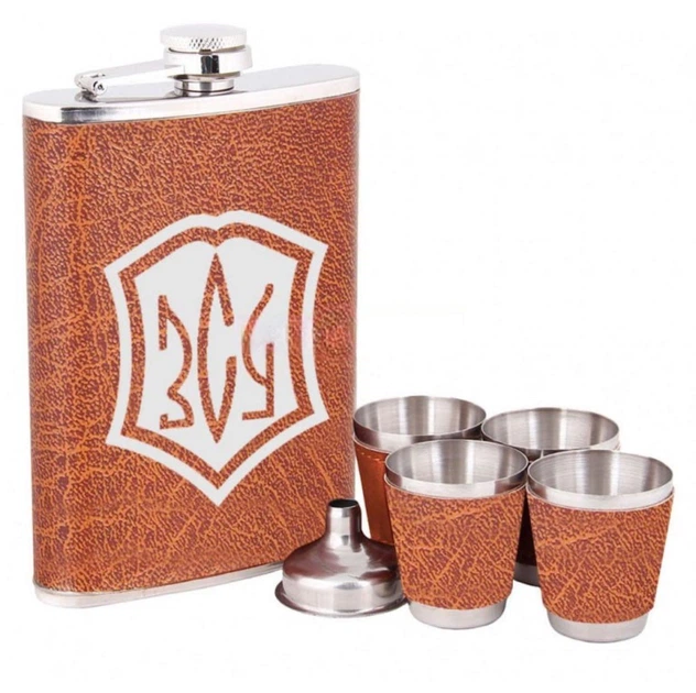 Набір Фляга ЗСУ України + чотири стаканчика + лійка 9 oz