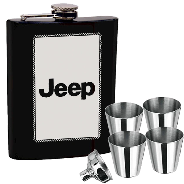 Набір фляга з гравіюванням "JEEP" + чотири стаканчики + лійка 7oz US-145U5