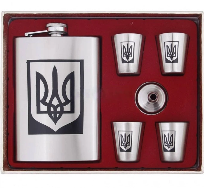 Набір Фляга з гербом України + чотири стаканчика + лійка 9oz