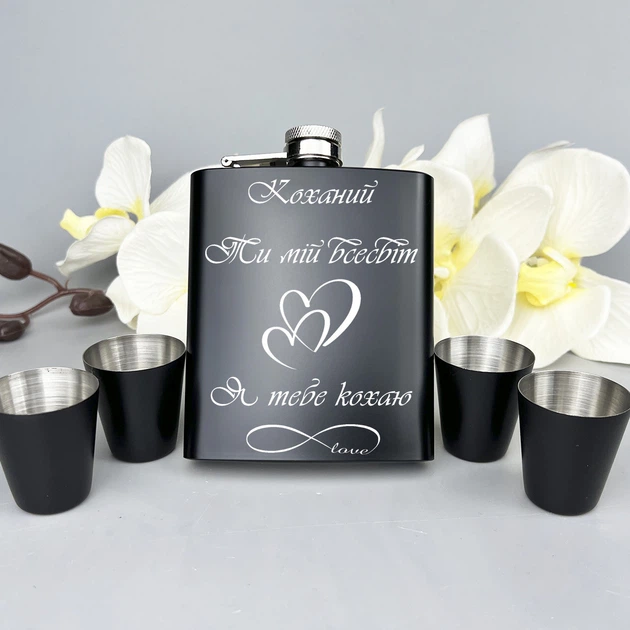 Набір фляга з гравіюванням "Закоханість" + чотири склянки + лійка 7oz US-145U3