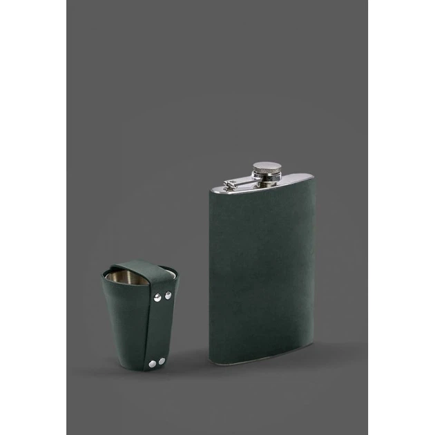 Набір з флягою та чарками в шкіряному чохлі зелений Crazy Horse