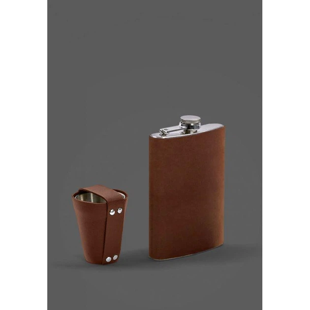 Набір з флягою та чарками у шкіряному чохлі світло-коричневий Crazy Horse 4614184