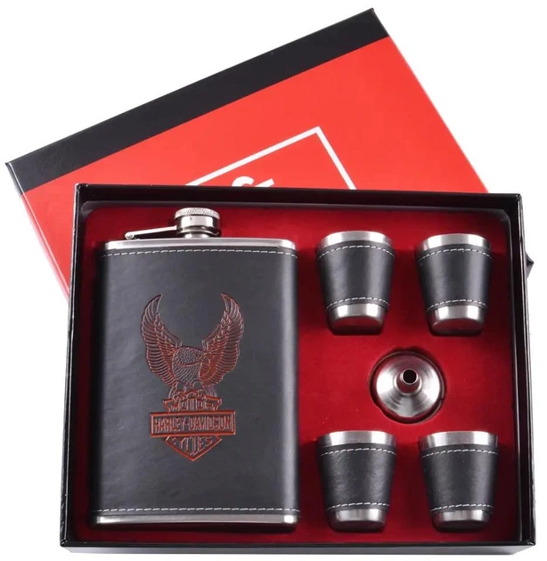 Набір подарунковий MOONGRASS 6в1 Harley Davidson Black фляга/лійка/стопки 4 шт. у шкіряному виконанні