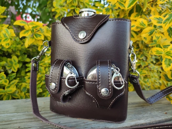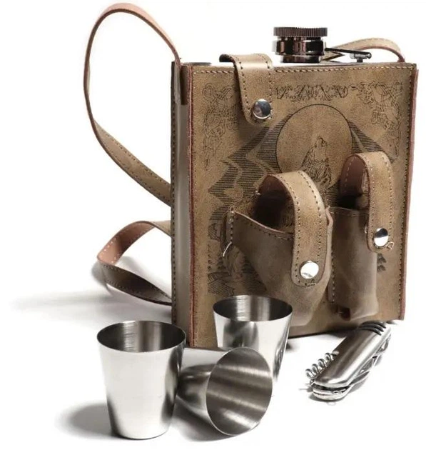 Набір похідний Brown Skin фляга 530ml 2 складані склянки 70ml у шкіряному чохлі TD18