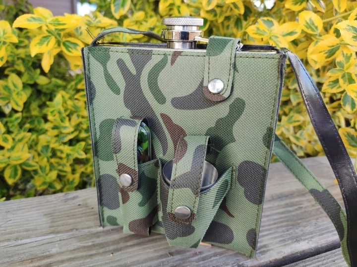 Набір похідний Khaki Фляга 530ml / 3 чарки 30ml / складаний ніж у камуфляжному чохлі TD18